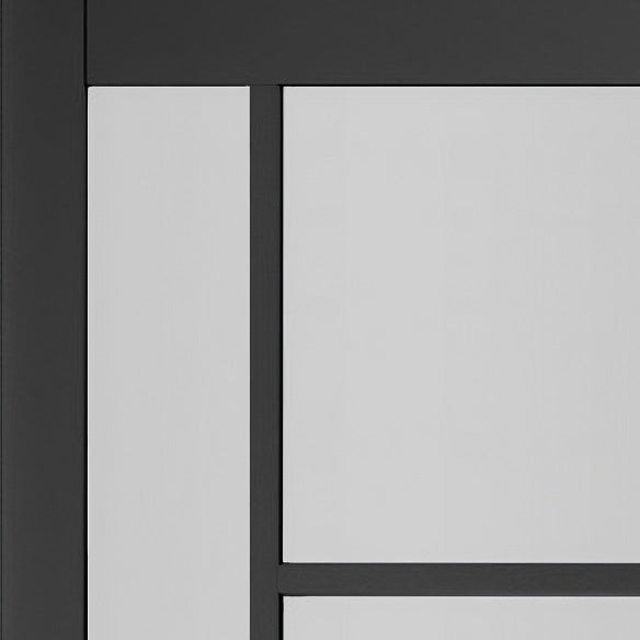 This prefinished black door will complement any modern interior with its unique geometric style.