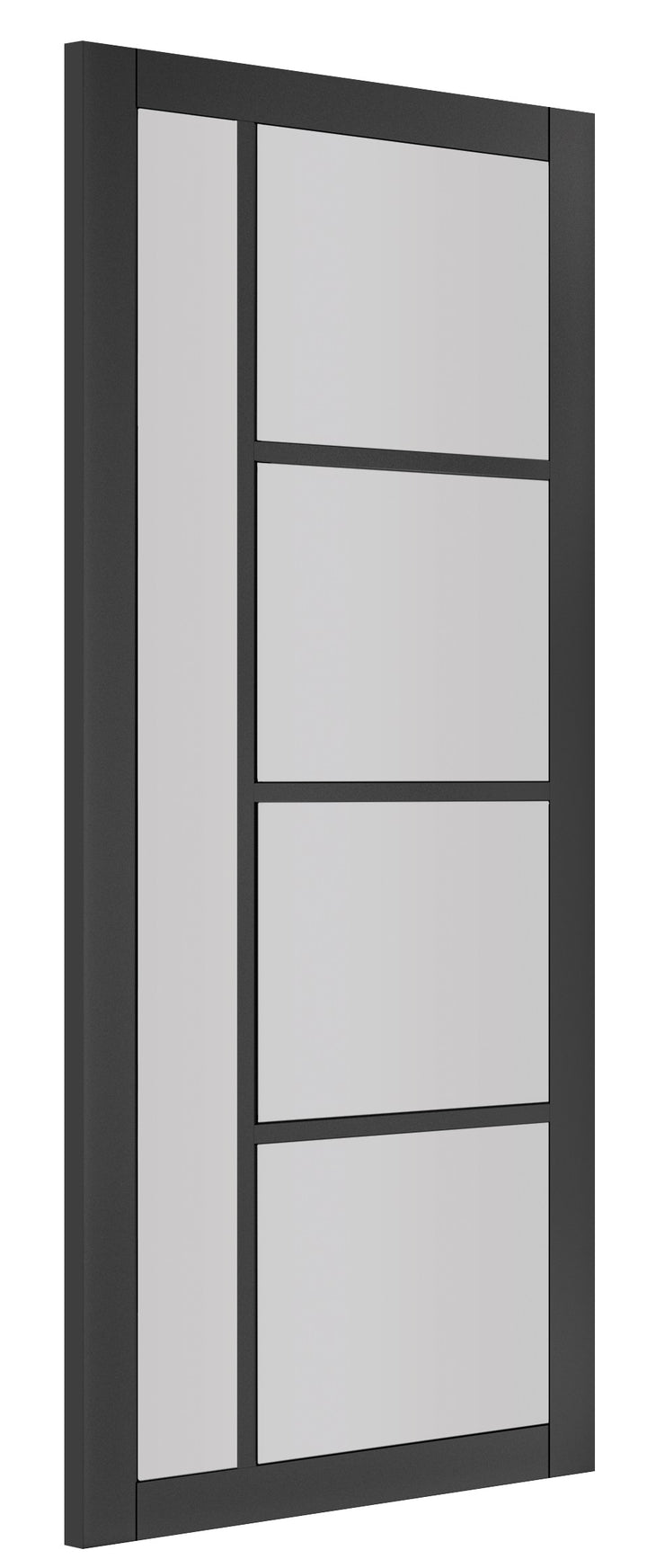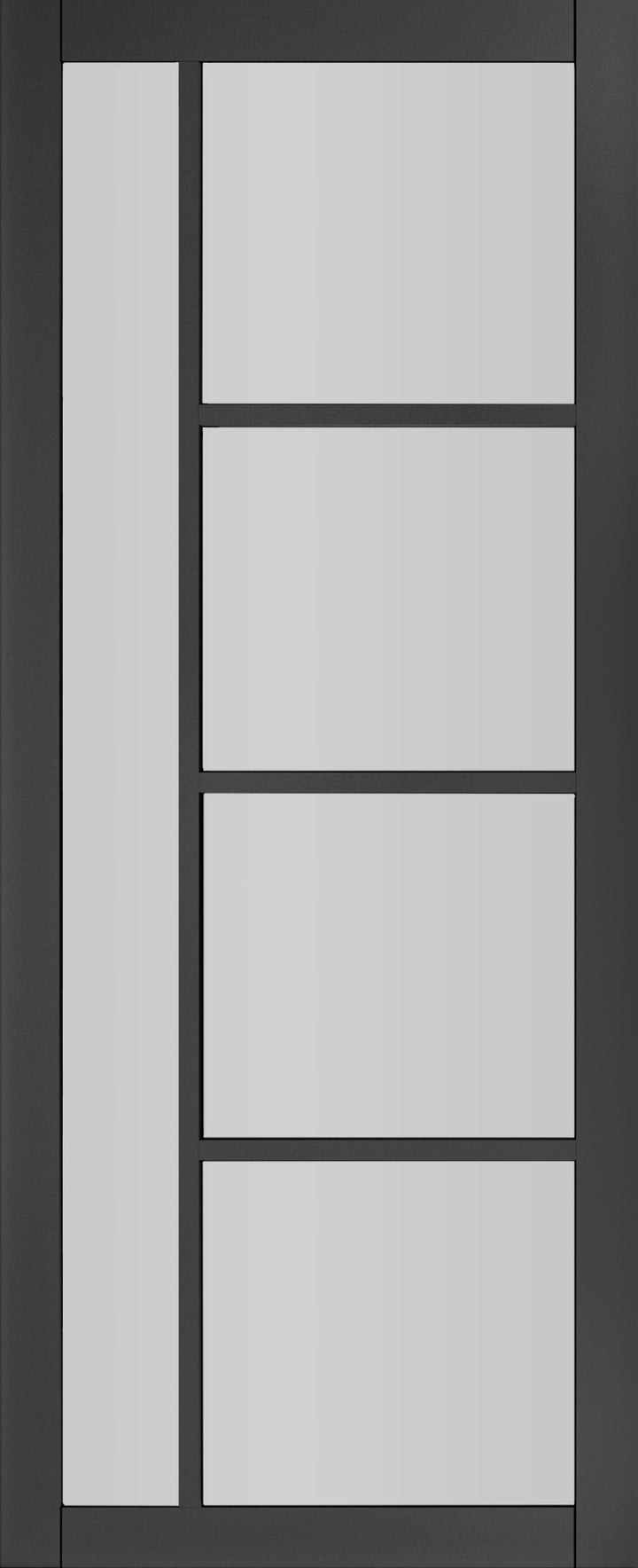 With an elegant asymmetrical profile and bold lines, the Enova Door brings an element of luxury and class to any interior design scheme. The panes of clear toughened glass open up the design of this door and lighten a room. This design is also available in solid or tinted glazed versions.