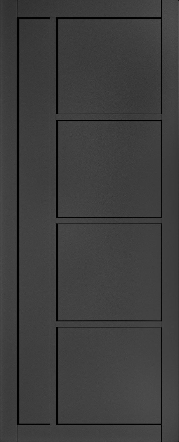This prefinished black door will complement any modern interior with its unique geometric style.