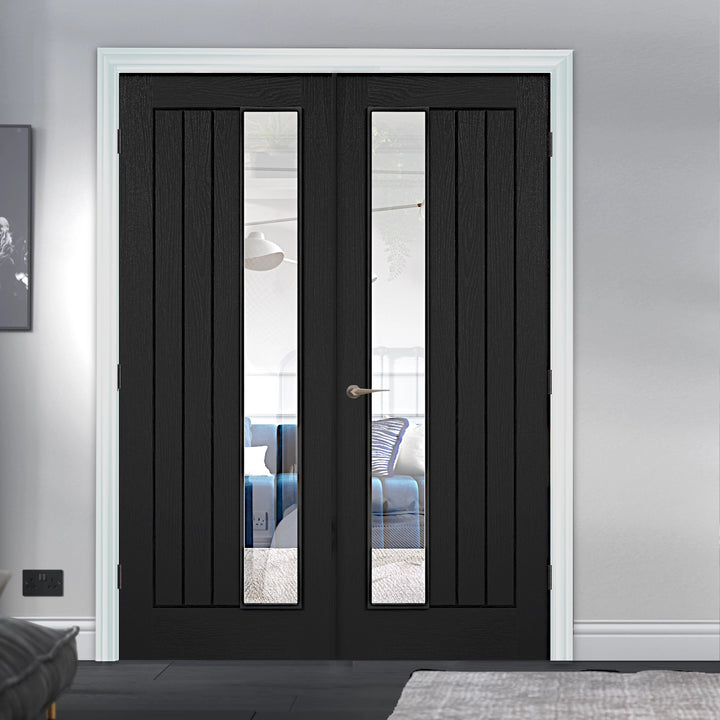 Black Mexicano Offset Clear Glazed Internal Door Pair