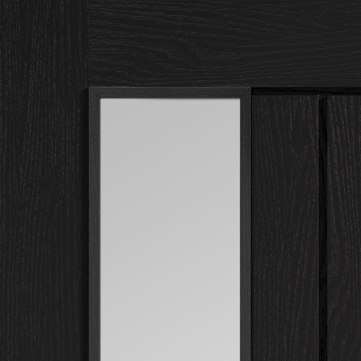 Featuring square cut vertical grooves alongside a clear glazed vertical panel, this pre-finished Black internal door will add a contemporary look and feel to your home. Perfect for rooms requiring some natural light to brighten up the space.