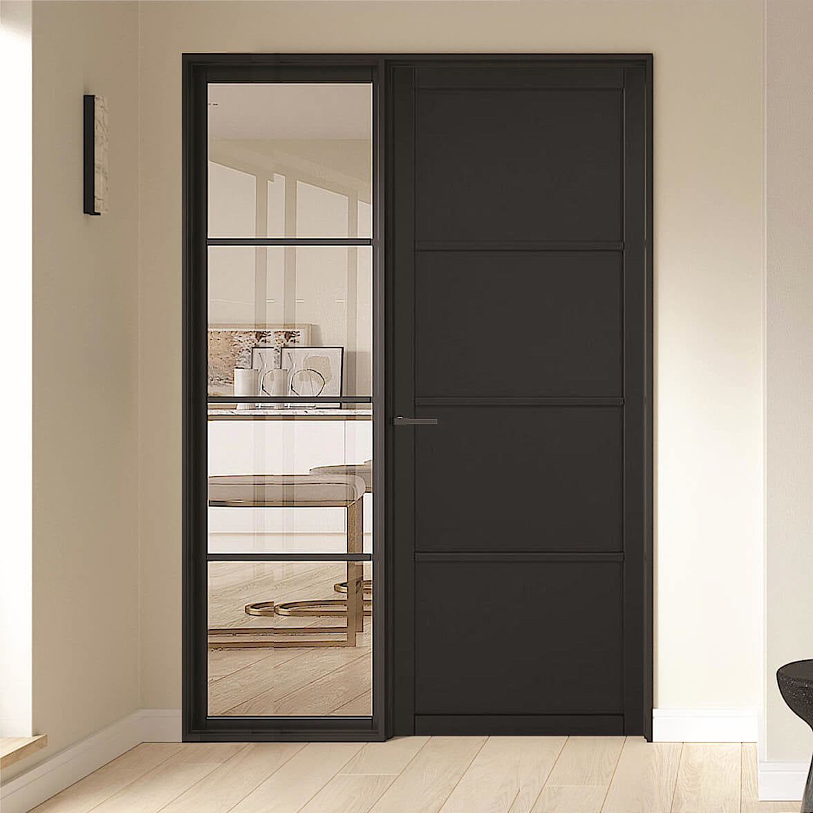 With slender profiles in a high-end primed black finish for a sleek, industrial feel, whether your room demands a glazed or solid option, this is a look that’s built to last.