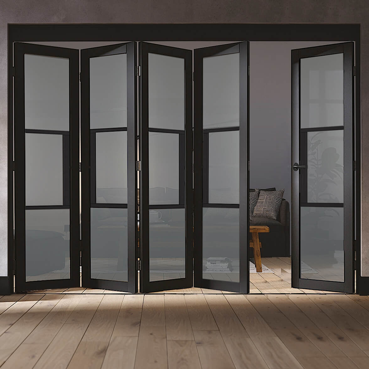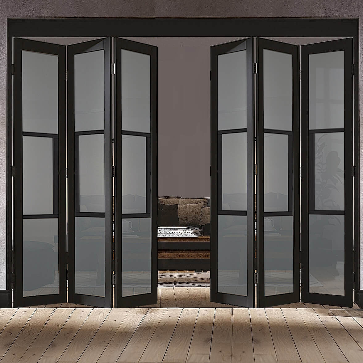 Black Tribeca 3 Door Industrial Style Folding Doors with Tinted Glass