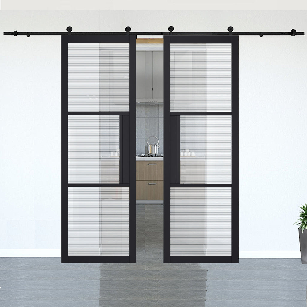 Black Tribeca 3L Internal Door Pair with Reeded Glass