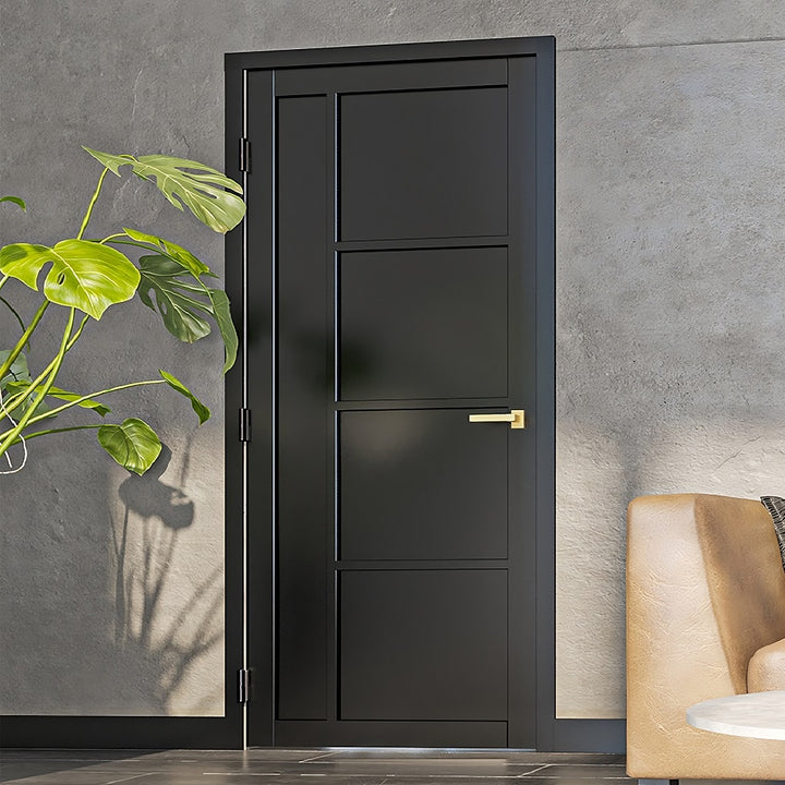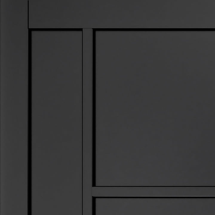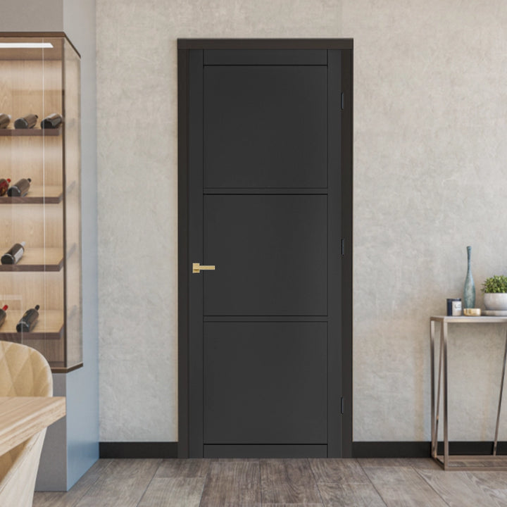 This prefinished black door will complement any modern interior with its unique geometric style.