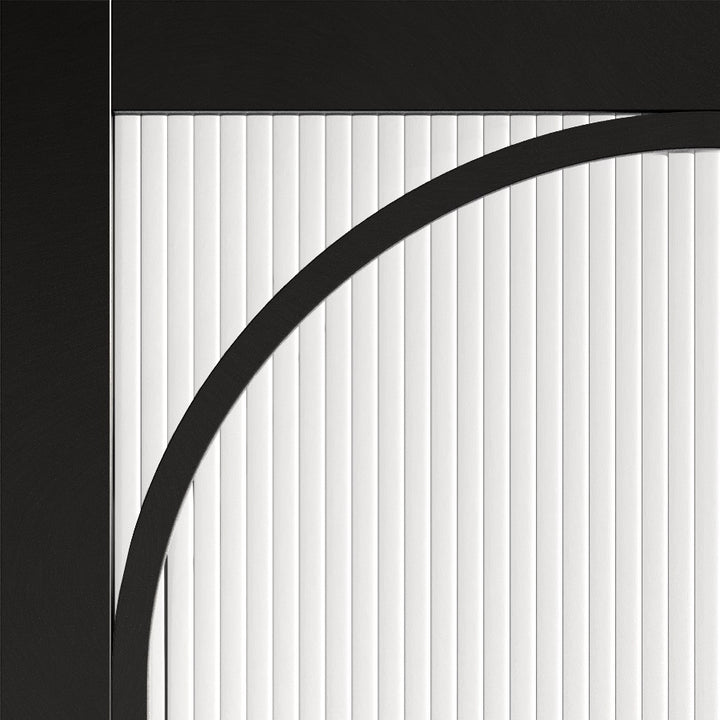 This pre-finished black door features slim curved profiles to create a contemporary design. The textured reeded glazing creates a unique look, whilst producing a diffused light effect for an element of privacy.