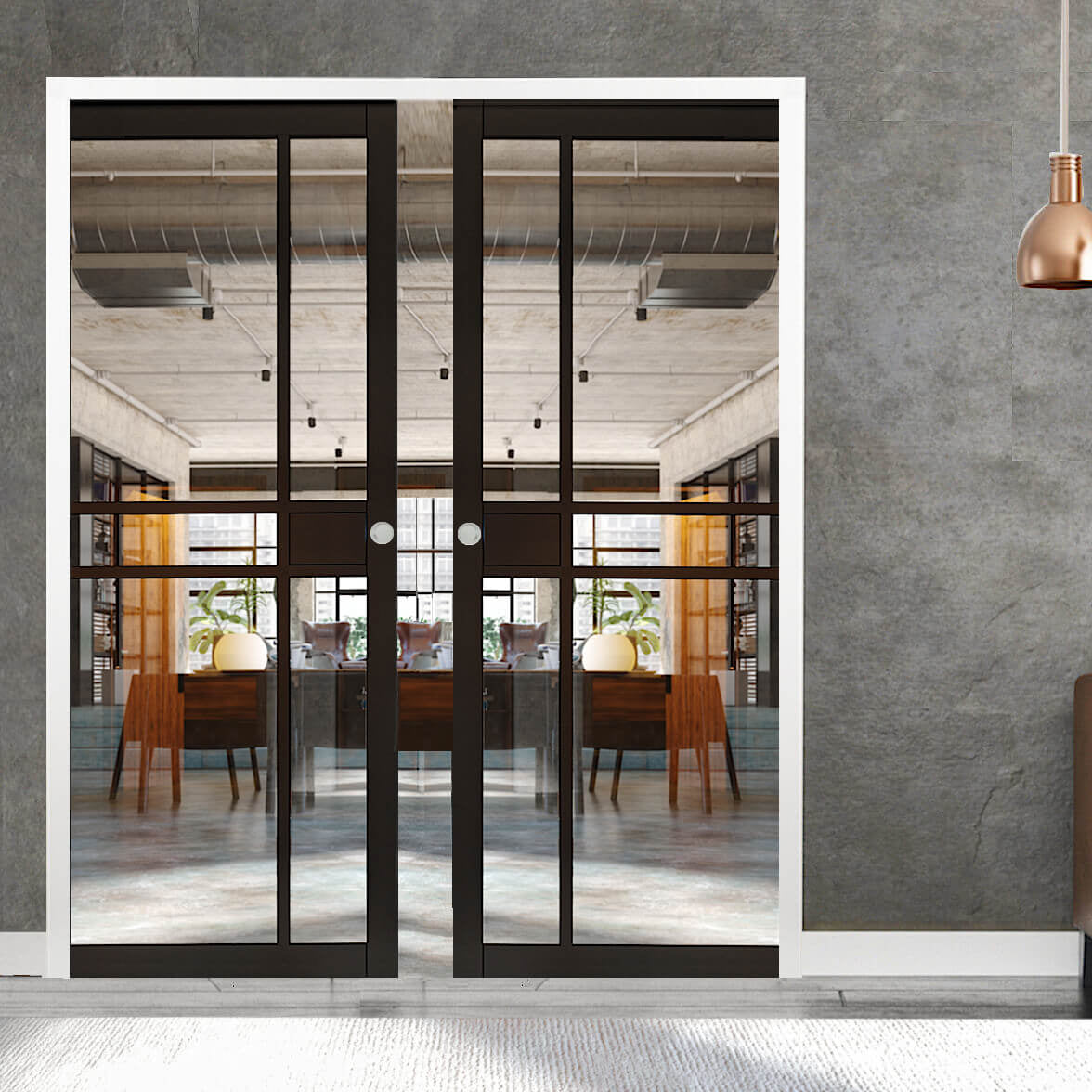 Simple straight lines creating a minimalistic industrial design makes the Pryda black a stylish modern door for any interior. The glazed Pryda black is the most stylish way to brighten up your interior.