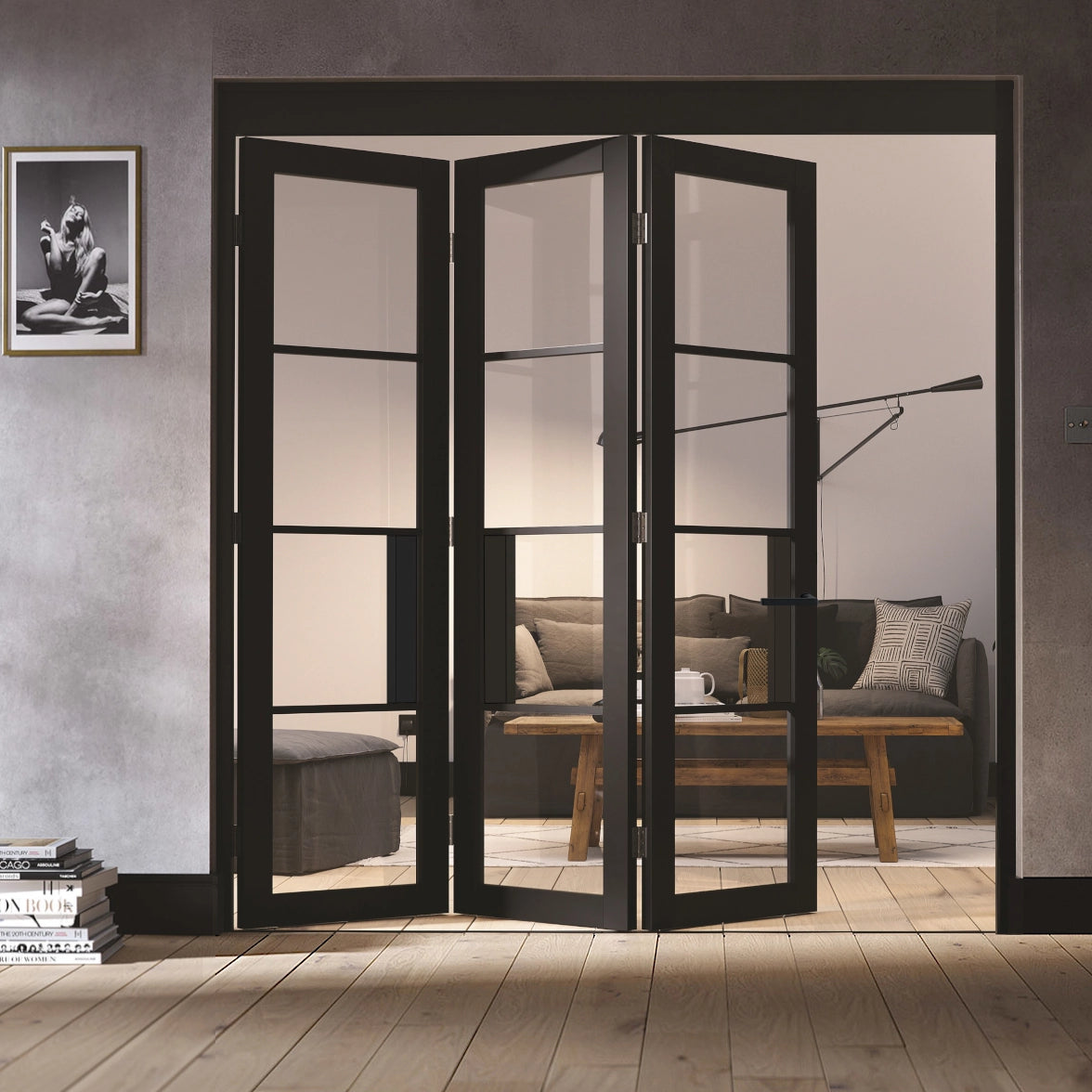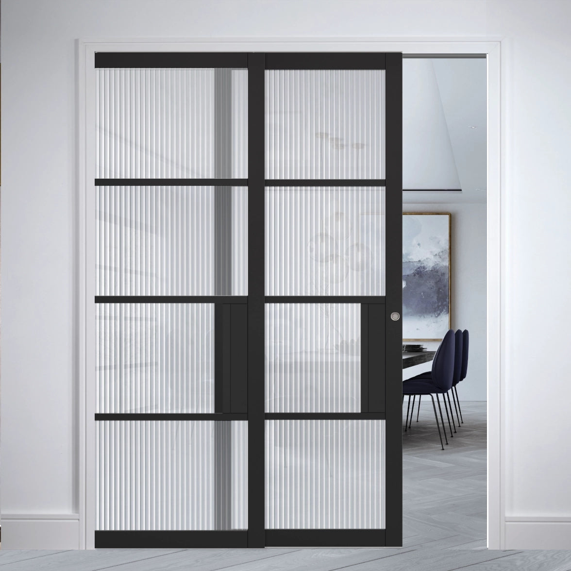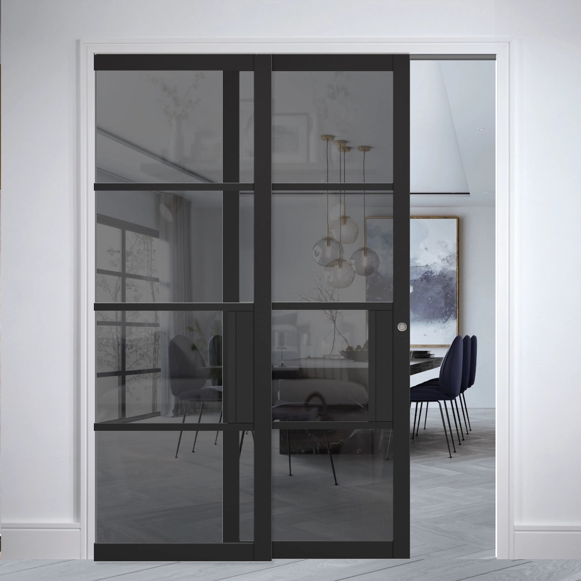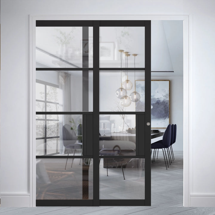 Black Chelsea Clear Glazed Telescopic Pocket Doors