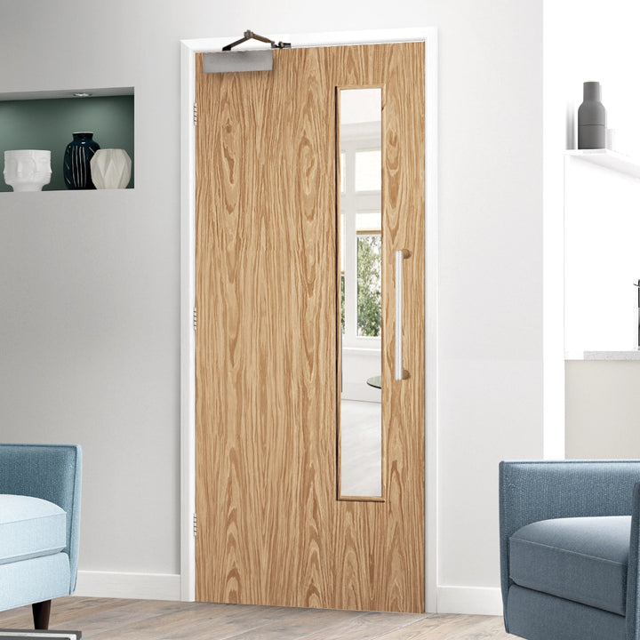 Flush Oak 20G Fire Rated Door FD30 Fully Finished