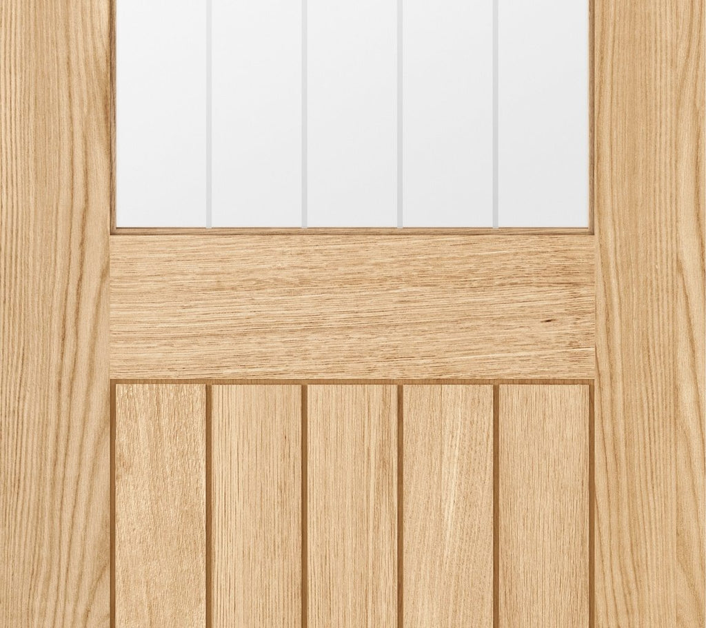 Engineered in construction for strength and stability, with a particle board core and solid Oak lippings, then faced with a real Oak veneer. The Belize glazed door is supplied unfinished allowing you to finish with a good quality finishing product, thus creating your own result which is ideal if you are looking to match with existing furnishings. The unique glass with etched lines will really adds to the luxury of the door. Also available in a standard internal door and fire door.