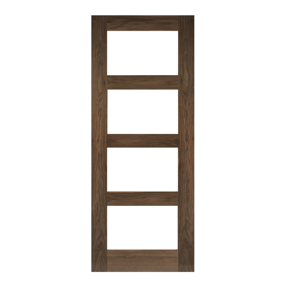 The Coventry Walnut Clear Glazed Double Pocket Door Set seamlessly bridges design eras with its refined minimalist aesthetic. Four symmetrical panels of clear toughened glass create an open, airy feel whilst maintaining elegant simplicity. The warm walnut veneer surround adds understated sophistication, making this door equally at home in period properties or contemporary spaces.