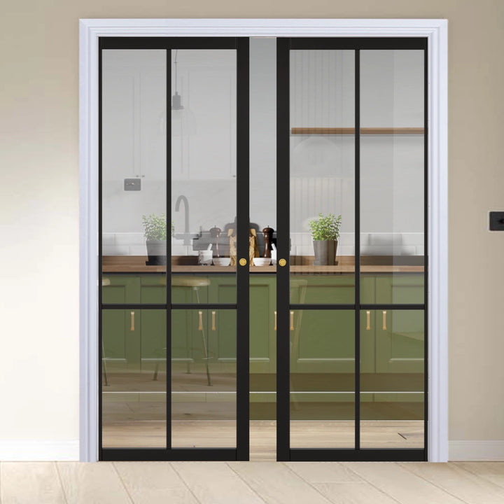 The Liberty 4L Double Pocket Door System is supplied complete with the Liberty 4L Double Doors. This double door system allows you to slide the doors straight in to the discreet pockets which are hidden within the cavity. This pocket frame is constructed from galvanised steel and is supplied complete with the track and fixings. The cassette system is supplied complete with a comprehensive timber lining kit (jambs) to finish the installation perfectly.