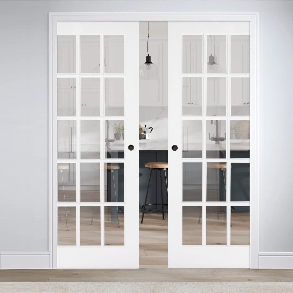 Solid White SA15 Clear Glazed Double Pocket Door Set