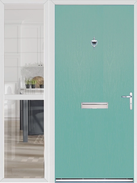 Turquoise Modern Flush External Fire Door Set with Sidelight