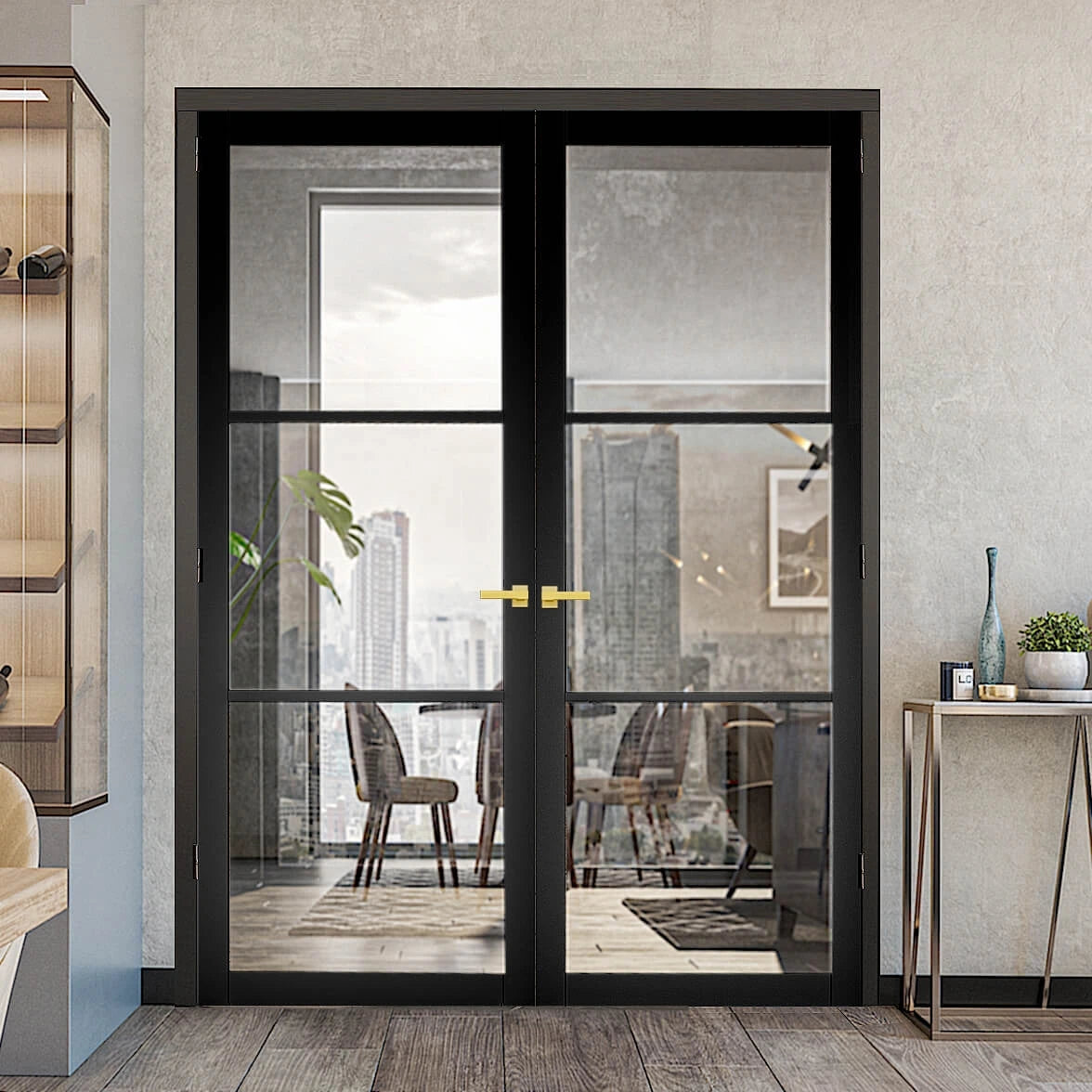 Black 3L Industrial Style Door with Clear Glass