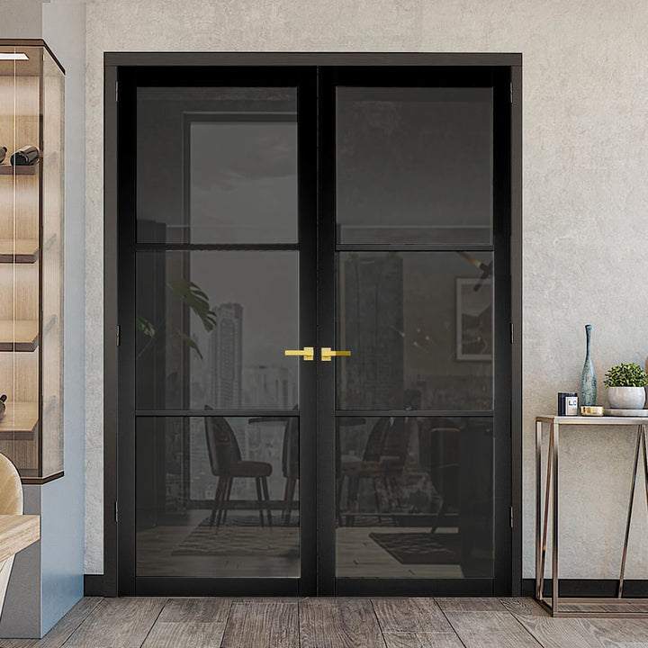 Black 3L Tinted Glazed Industrial Style Door Pair