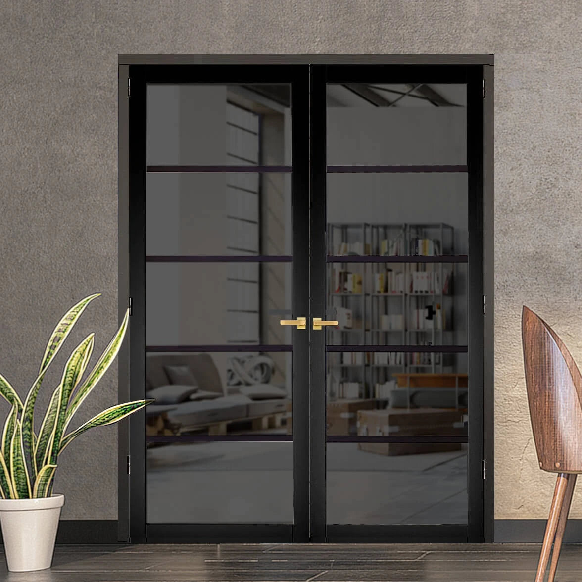 Black 5L Industrial Style Door with Tinted Glass