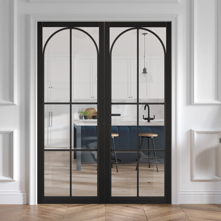 Combining on trend curves and geometric panelling, the Astoria's elegant design will really stand out in your home. Perfect for rooms seeking natural light such as a living or dining room, this black internal door will add an industrial yet classic look to your interior.