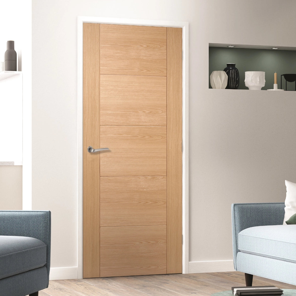 This oak Internal door has been designed with 5 horizontal flush panels and 2 vertical stiles giving it a sleek modern look.
