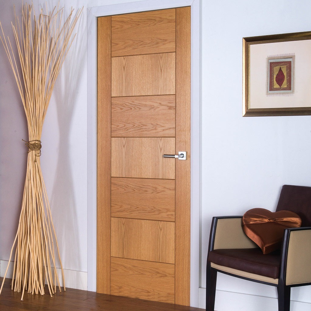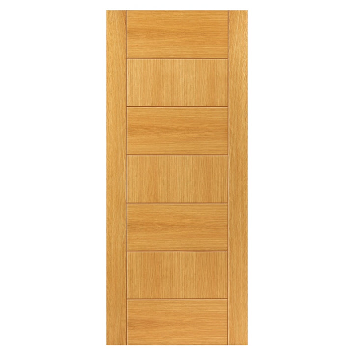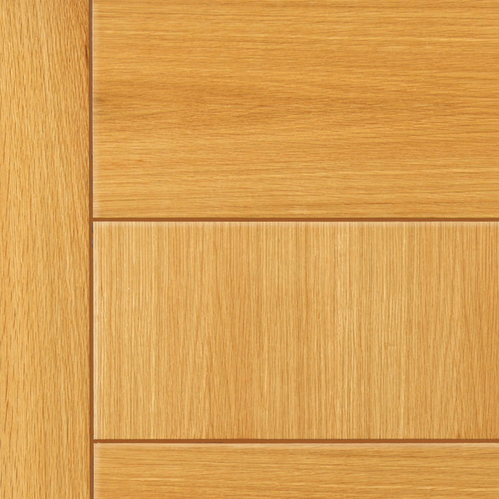 Elevate your interior with our Contemporary Oak Sirocco Internal door. Its alternating veneers add a touch of sophistication, while decorative grooves give a panelled look. Made with a pre-finished oak veneer grooved into MDF, and a semi-solid core, this door exudes quality and style.