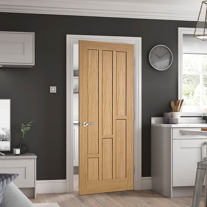 Experience rustic charm and durability with the Coventry 6 Panel Oak Fire Door! Its pronounced unfinished oak wood grain and stepped panels add character to any space, while providing fire safety. Get the best of both worlds with this sturdy and stylish door.