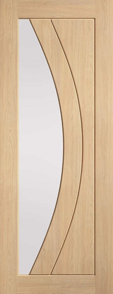 Transform your interior spaces with the Girona Unfinished Oak Clear Glazed Door—a stunning fusion of natural warmth and modern sophistication. This contemporary masterpiece features two elegant curved grooves and an expansive clear glazed panel that floods rooms with light, creating an airy, connected atmosphere. Built on a solid engineered core, it delivers exceptional durability and stability you can rely on. The unfinished oak veneer gives you complete creative control, letting you customise the finish to perfectly complement your décor. Ideal for homeowners who refuse to compromise between style and substance, the Girona brings understated elegance and practical brightness to any modern home.