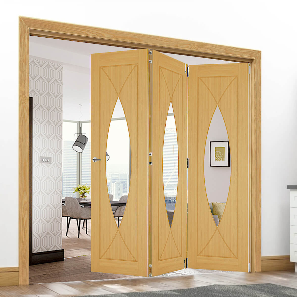 Amalfi Oak Clear Glazed Flush Pocket Door Set