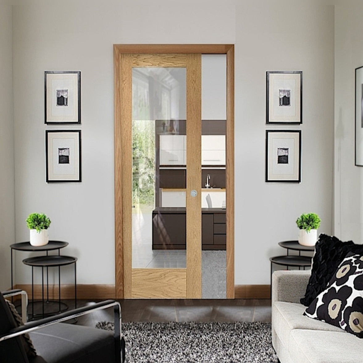 Oak Pattern 10 Clear Glazed Flush Pocket Door Set