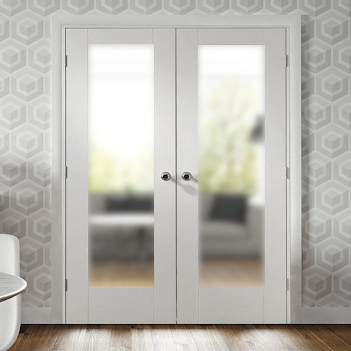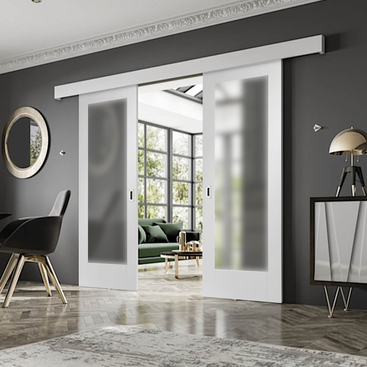 Sliding Room Divider with White Obscure Glazed Doors
