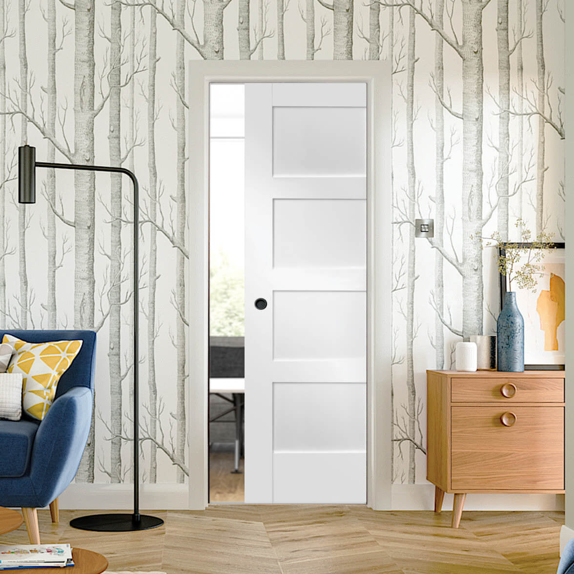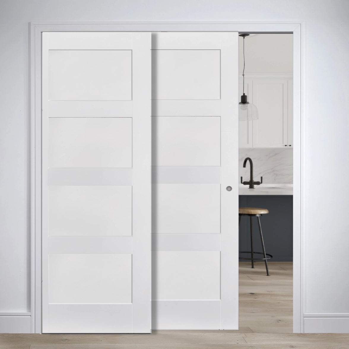 Sliding Room Divider with White Shaker 4 Panel Doors