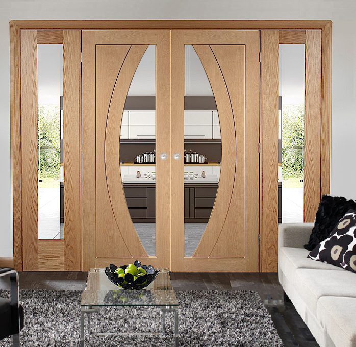 Oak Salerno Sliding French Doors with Fixed Pattern 10 End Panels