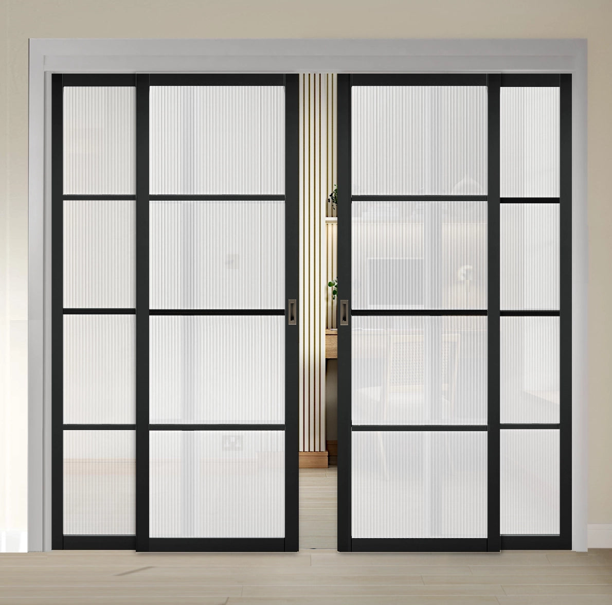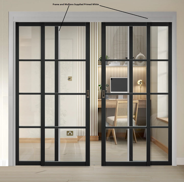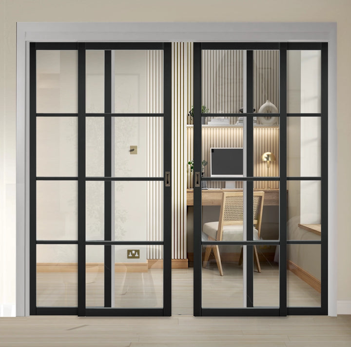 Soho Black 4L Sliding French Doors with Fixed Panels