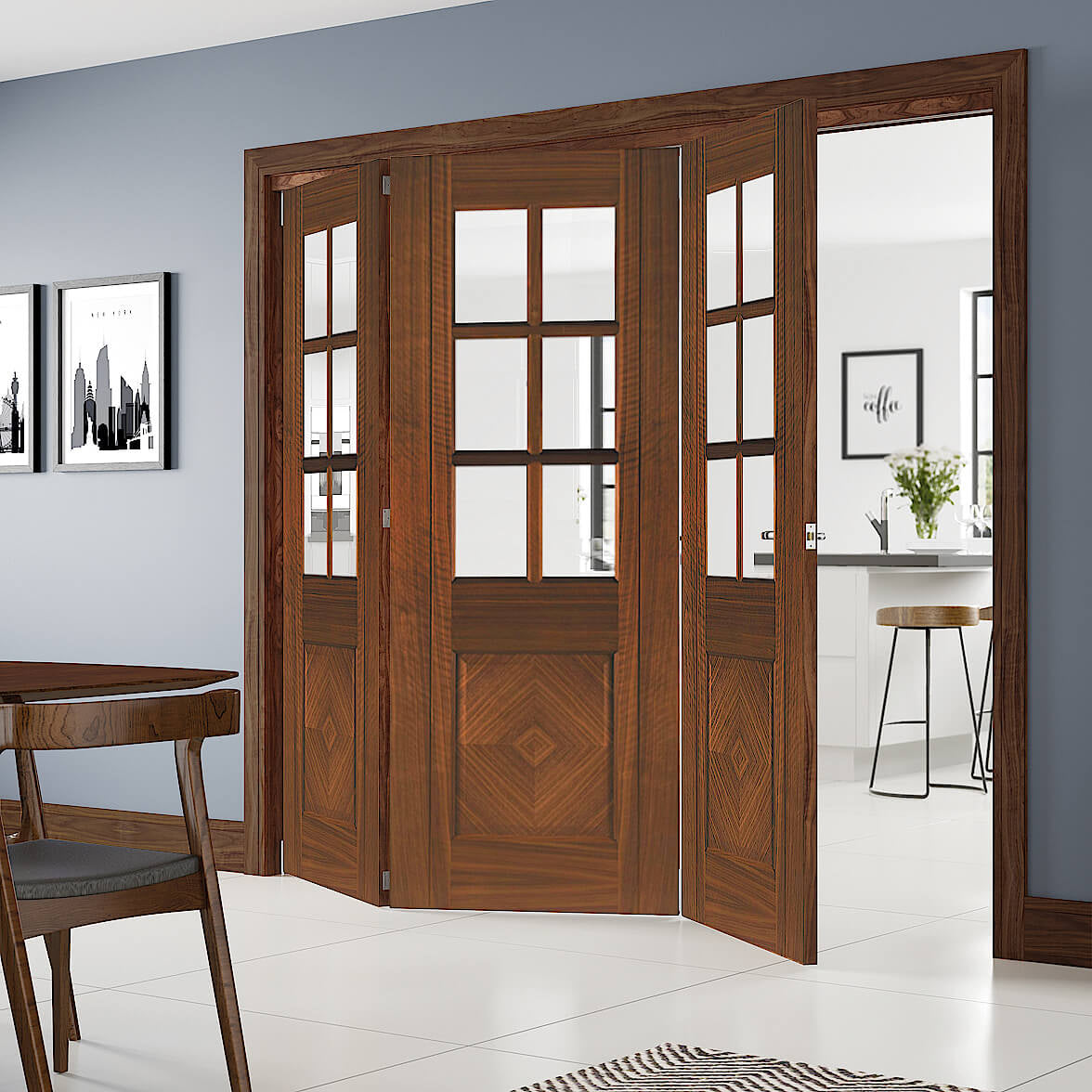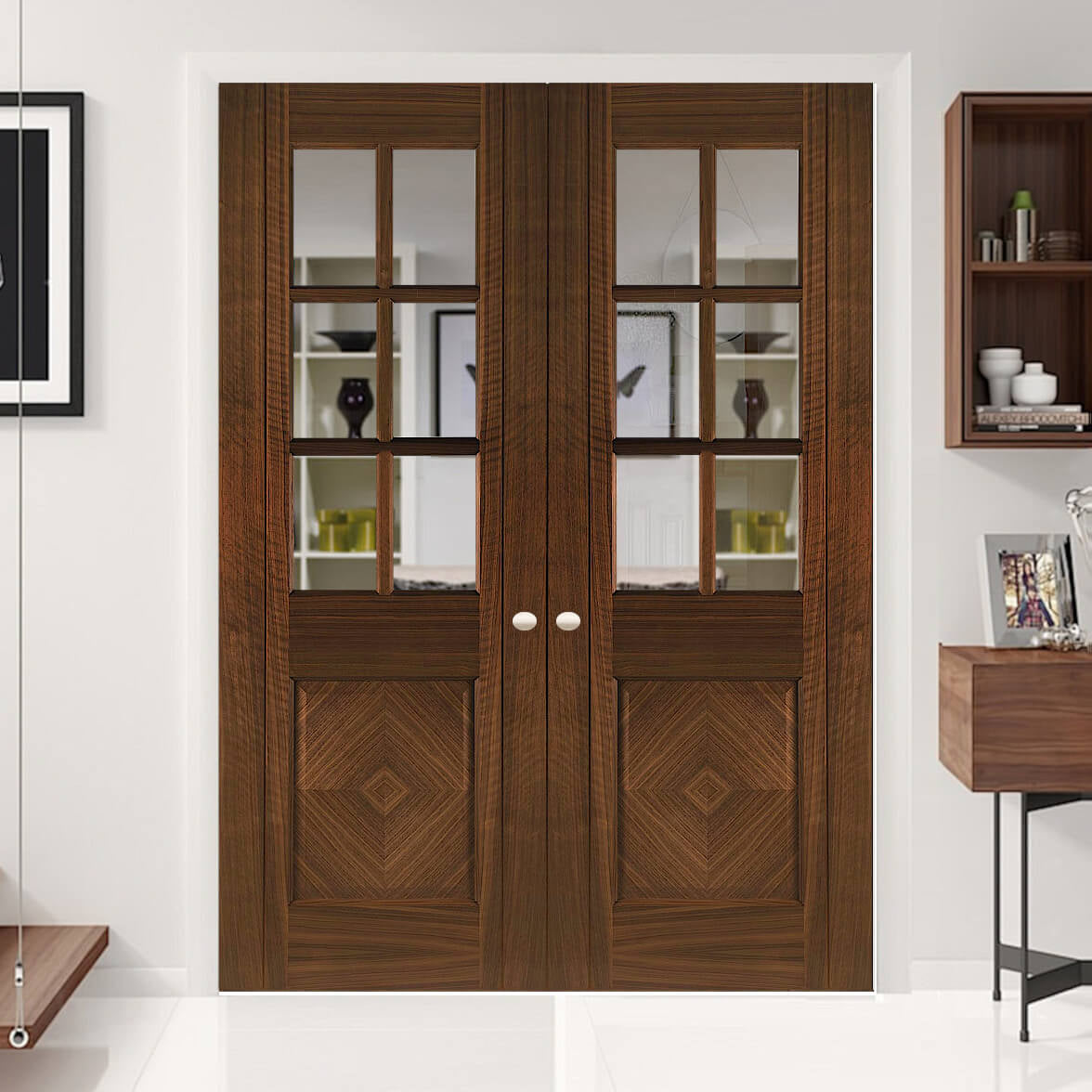 Kensington Walnut Glazed Flush Pocket Door Set