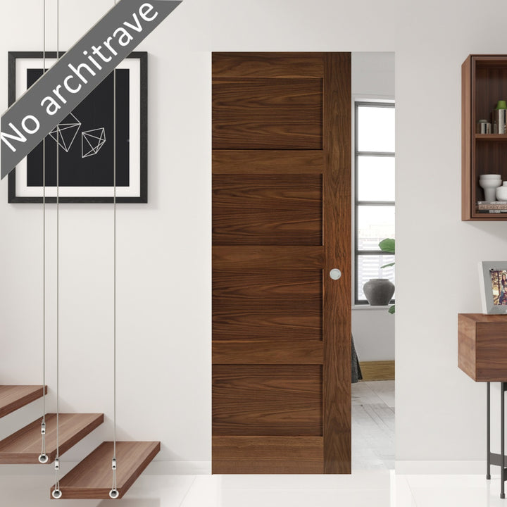 Walnut 4 Panel Shaker Flush Pocket Door Set