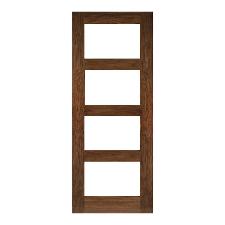 The walnut shaker door offers a classical 4 Light design ideal for both modern and traditional homes. The iconic shaker design is well known for its simplicity and flat panel design which gives it a streamlined appearance. This door features 4 clear glass panels. Supplied factory finished in a beautiful warm walnut finish.