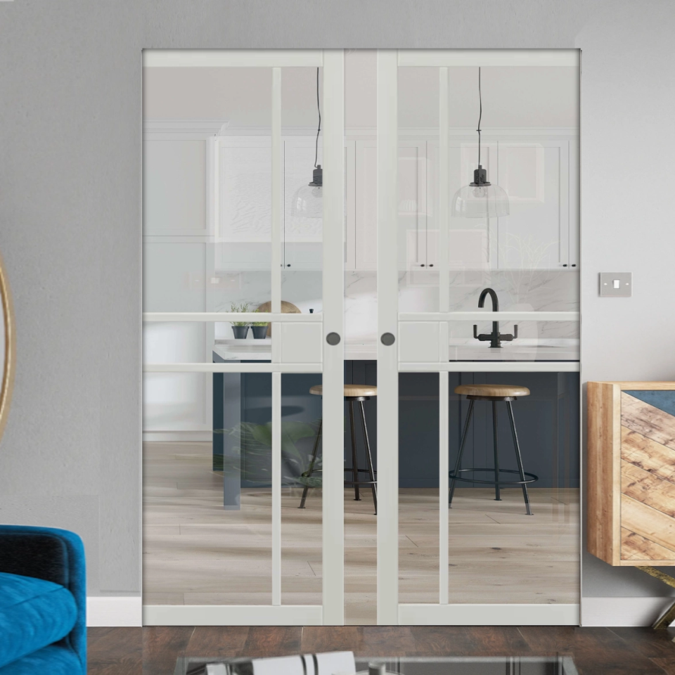 City White Clear Glazed Double Flush Pocket Door Set