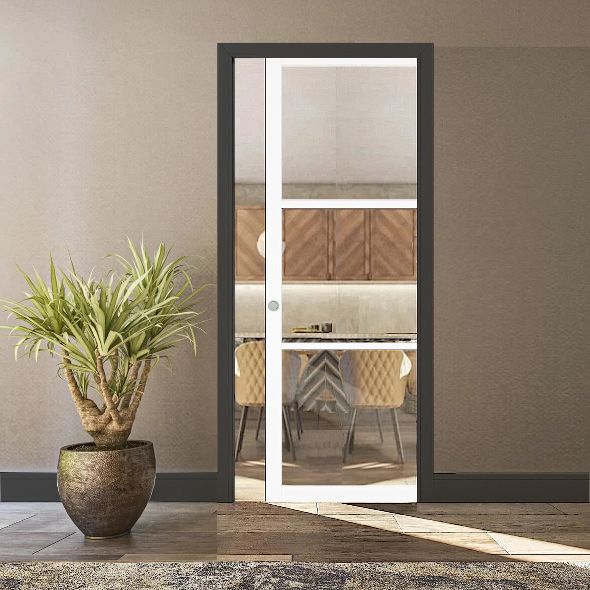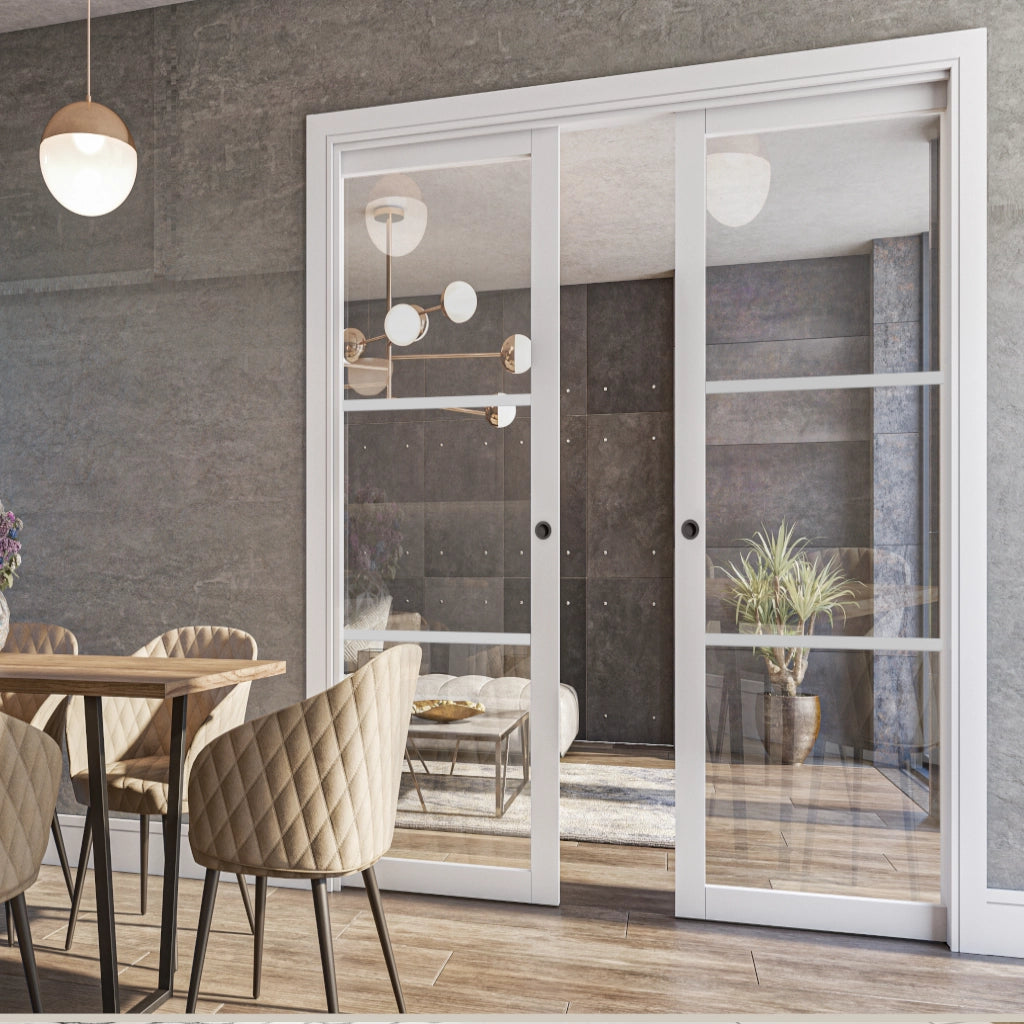3L White Clear Glazed Flush Pocket Door Set