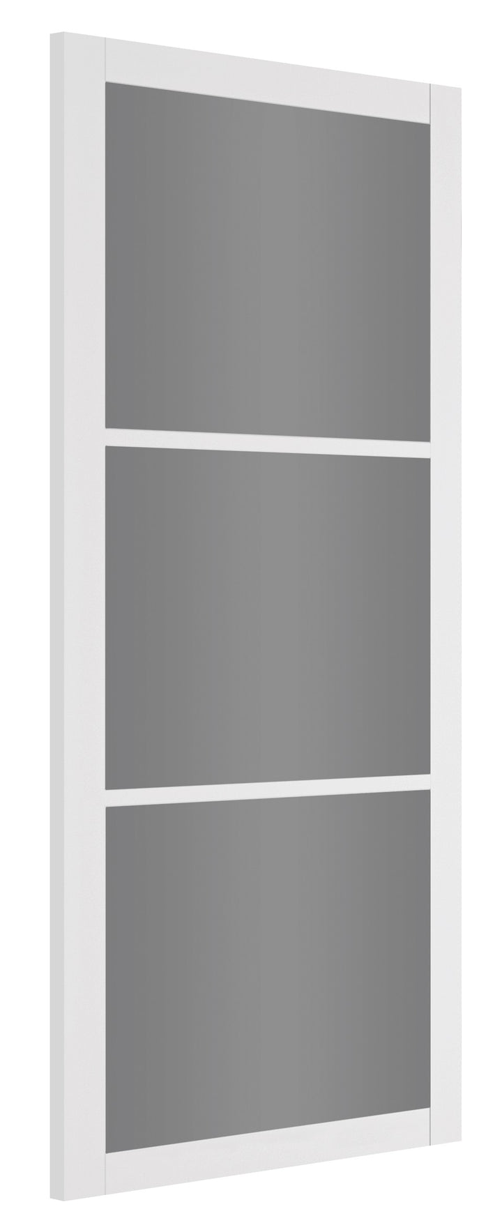 The 3L white door is the epitome of a contemporary, chic door with cutting-edge urban appeal. Forming part of the Industrial door range, this door has a particularly slim profile with tinted glass panels and slim glazing bars, thus enabling you to attain the industrial-style door look for a fraction of the price.