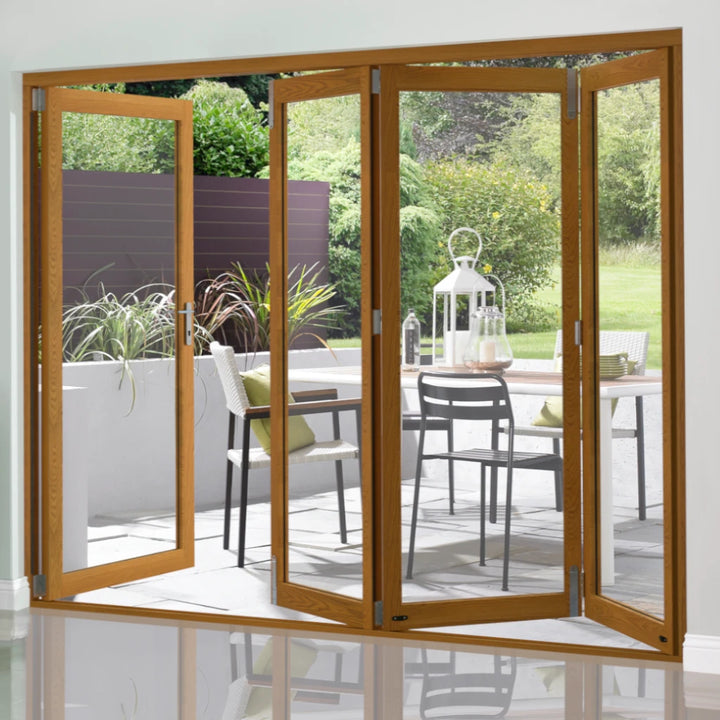 Part of the premium range, the 10ft Oak Bifold Set is supplied factory finished, taking out the hassle of finishing the doors on site, The doors are 54mm thick offering strength and stability with a solid engineered core.