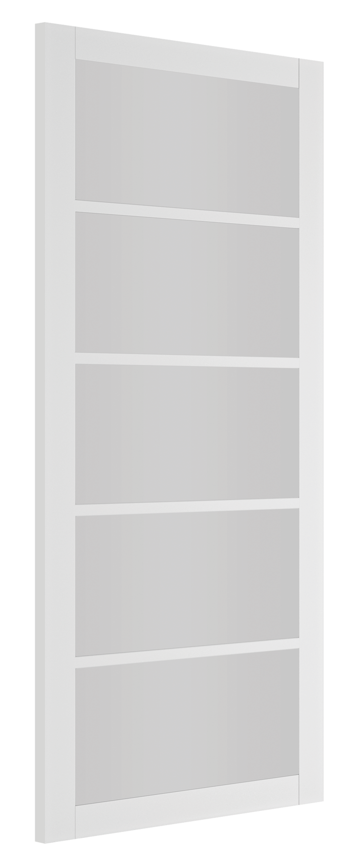 The 5L white door is the epitome of a contemporary, chic door with cutting-edge urban appeal. Forming part of the Industrial door range, this door has a particularly slim profile with clear glass panels and slim glazing bars, thus enabling you to attain the industrial-style door look for a fraction of the price.