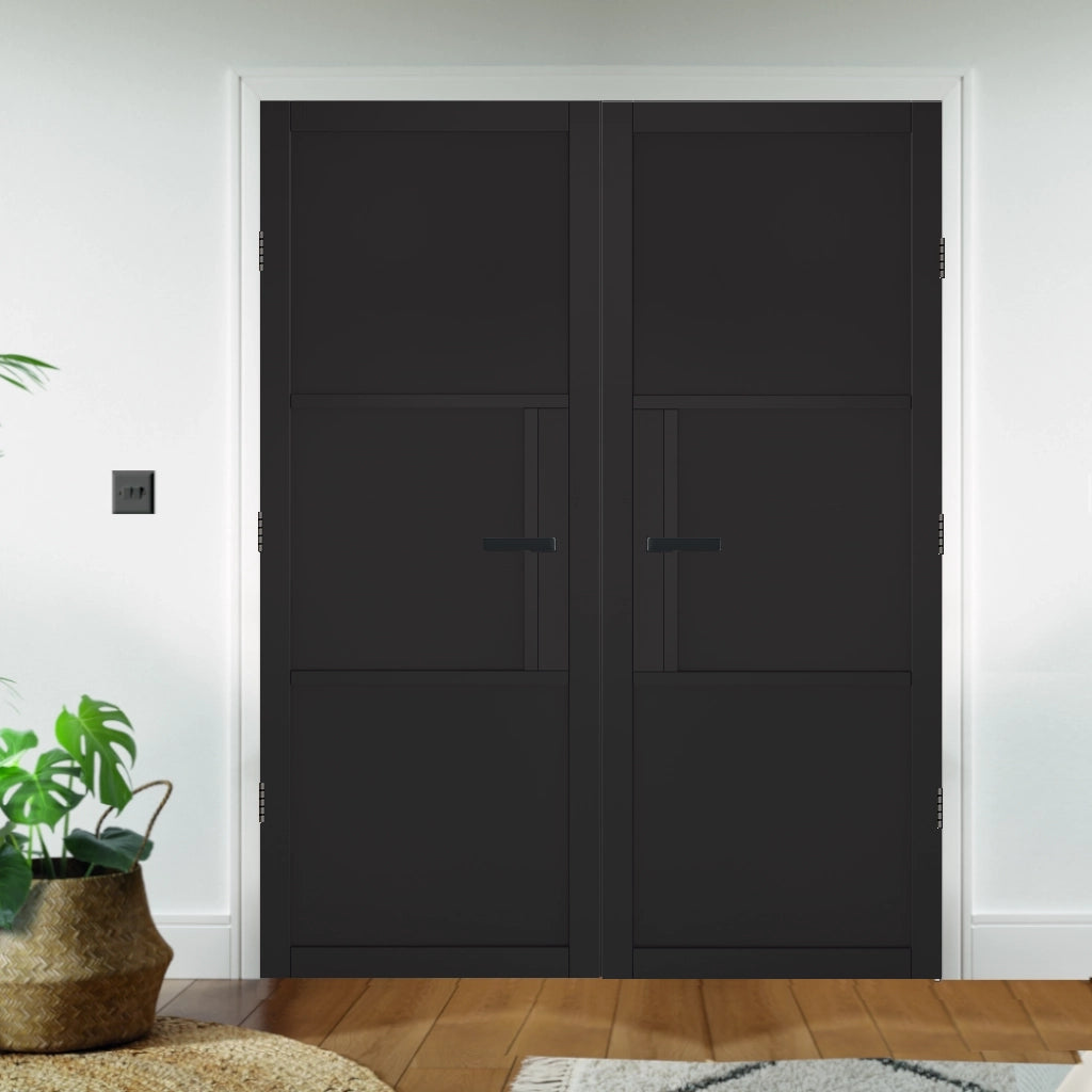 Black Tribeca 3 Panel Door with Fixed Demi Panel