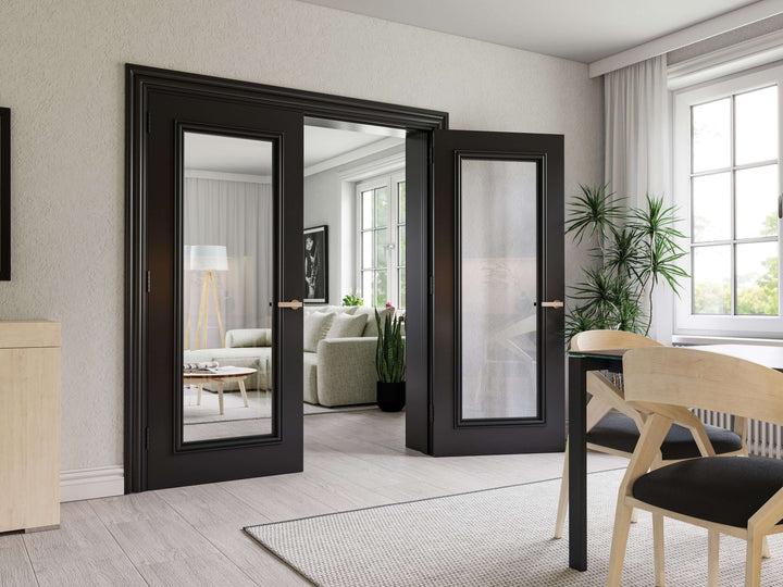 Elevate your home with the striking Blenheim Black Clear Bevelled Glazed Door. The perfect blend of traditional and modern, the opulent mouldings are highlighted by the exceptional black finish. With a simple one panel design, this door exudes elegance and style. Bring sophistication to your home with the Blenheim.