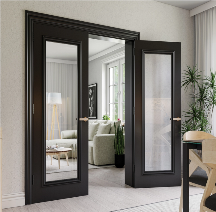 Blenheim Black Clear Bevelled Glazed Door Pair Fully Finished