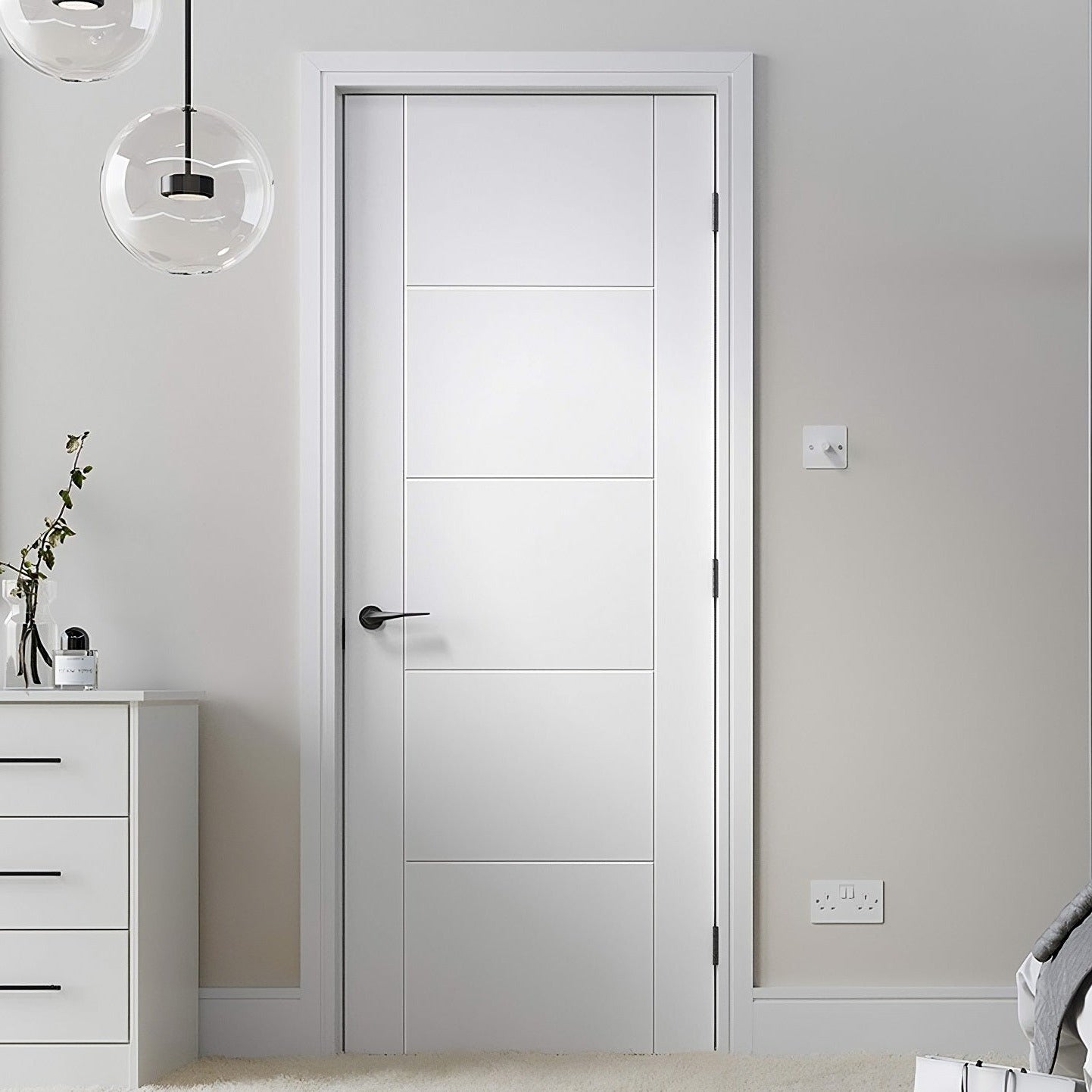 The Capri White Internal Door is a versatile and stylish choice for any home. With its deluxe primed finish, it only needs a topcoat for a fully decorated look. The semi-solid core provides durability and the V grooves add a touch of character to this modern design. Also available in Oak Veneer.