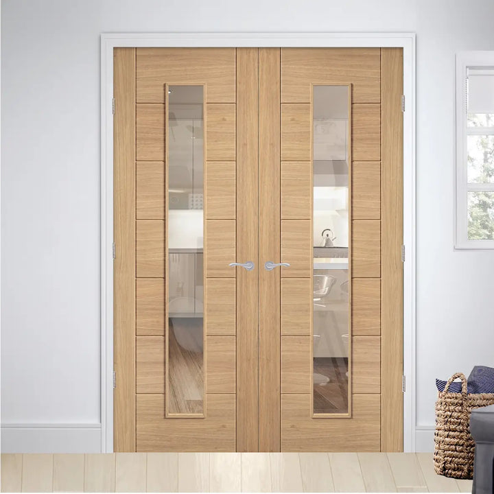 Carini Oak Long Light Clear Glazed Fully Finished Door Pair