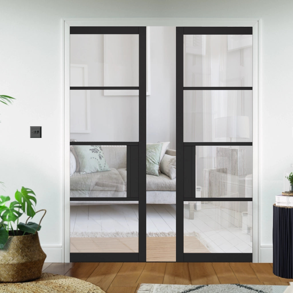 Chelsea Black Clear Glazed Double Doors with Double Sliding Track