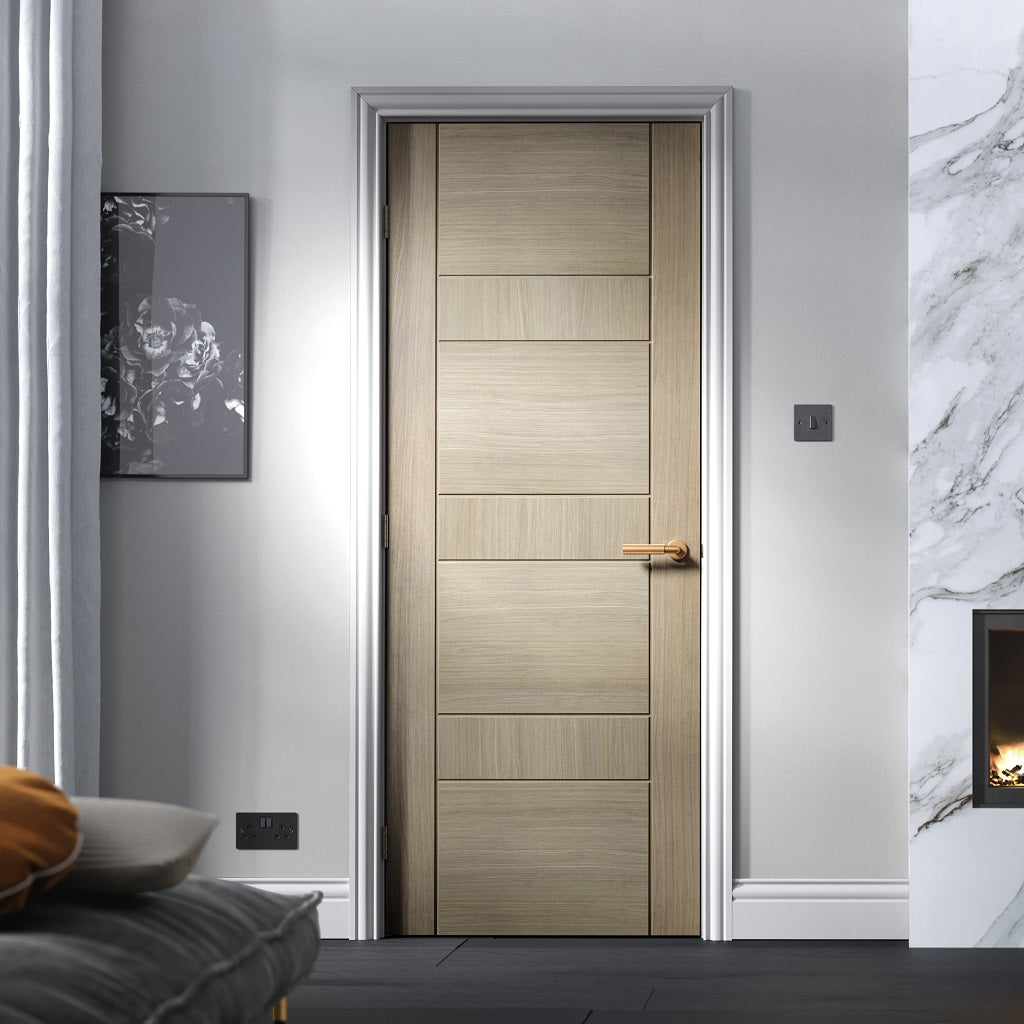 Transform your home with the Edmonton Light Grey Pocket Door Set. The pre-finished light grey color and V Cut grooves create a sleek, modern look. Elevate your space with this cool and contemporary design that adds a touch of sophistication, upgrade to the Edmonton for a stylish and functional addition to your modern home.