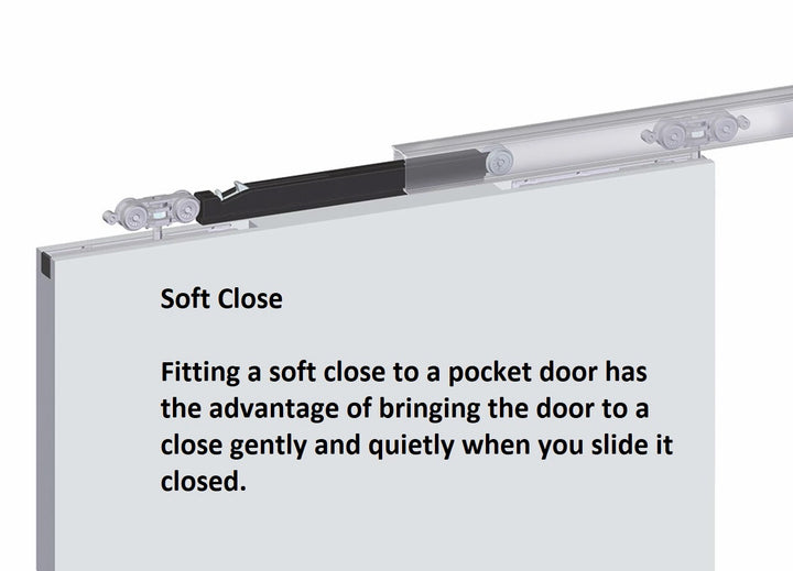 There is no bottom track or threshold strip, as with all our pocket door systems the single pocket door frame is top hung from a track. Inside the track there are runners which are attached to the top of the door via a bracket. This means there is no threshold strip or track in the floor and your flooring can continue through the opening undisturbed. Accessories such as soft door closers, flush door pulls and bathroom locks can all be purchased separately.