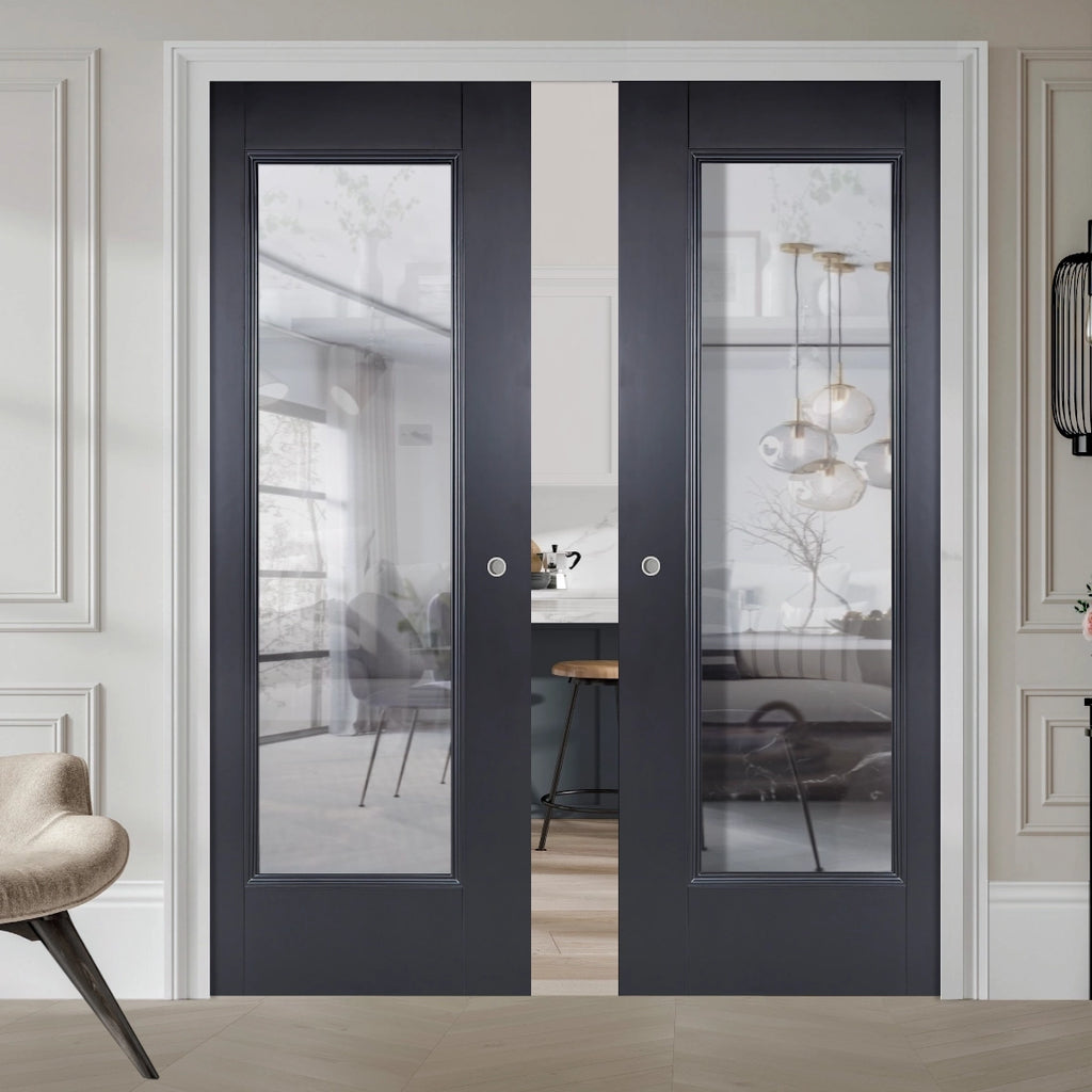 Eindhoven Black Clear Glazed Double Pocket Door Set