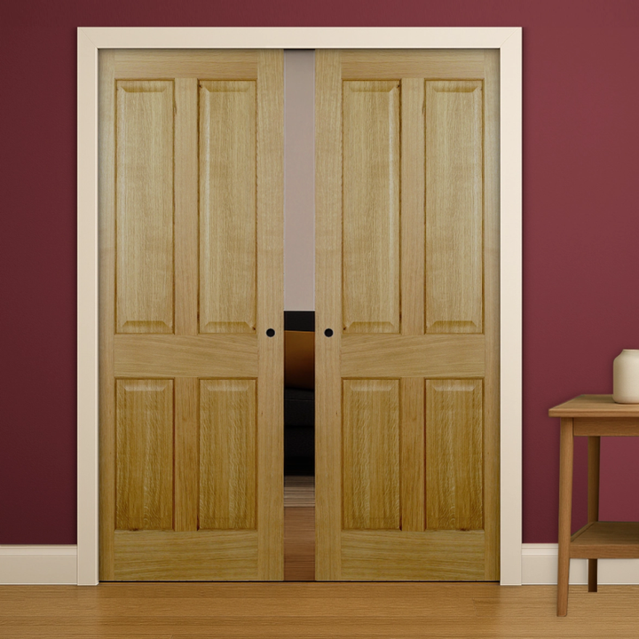 Elegance Oak Regency Double Pocket Door Set - 78" x 48" x 35mm (1981mm x 1220mm x 35mm)